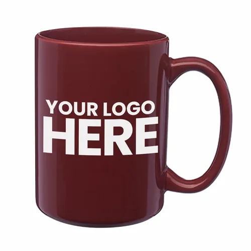 15 oz. Large "El Grande" Logo Imprinted Ceramic Mugs.. Smooth Molded Ceramic Composite. Glossy Color Exterior with Matching Color Interior. Easy Comfort Grip C-curved Handle. Recommended Hand Wash Only