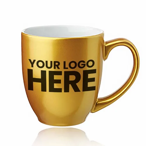 16 oz. Metallic Bistro Coffee Mugs. Smooth Molded Ceramic Composite. Metallic Color Exterior with White Color Interior. Easy Comfort Grip C-Curved Handle. High-Curved Grip for Easy Grab-n-Go Handling. Recommended Hand Wash Only