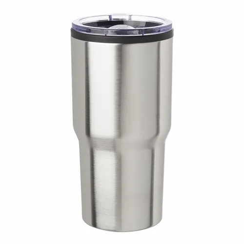 16 oz. Capacity. Clear Plastic Slider Lids. Plastic Interior Wall with Stainless Steel Outer Wall. EVA Bottom Pad