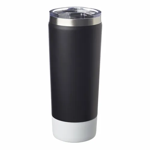 28 oz. Capacity. Clear Slider Lid included. Double Wall Stainless Steel to Hold Temperature. Silicone Wrapped Base. Matte Finish on Top