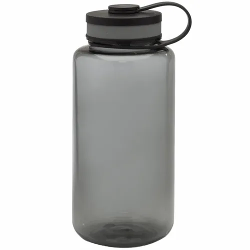 38oz Plastic Water Bottle. Wide Mouth Bottle with Screw on Cap. Color Matching Trim. Transparent Outer Wall