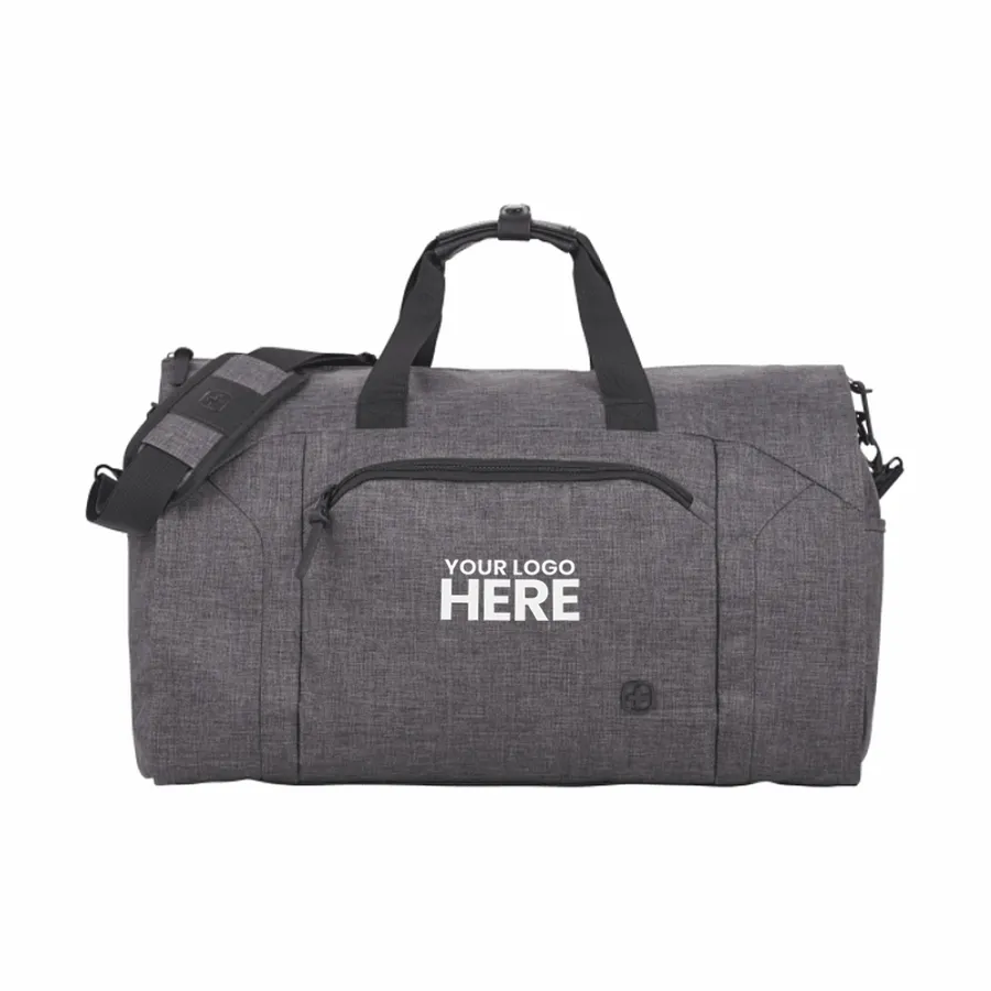 The Wenger Getaway 20 RPET Garment Duffel combines the functionality of a garment bag with the portability and simple elegance of a luxury duffel bag. The main compartment unzips to reveal side sleeves for shoes, designated garment storage and space for an entire weekend’s worth of clothing. The exterior boasts two side accessory pockets and pockets on the front and back of the duffel for last minute items.