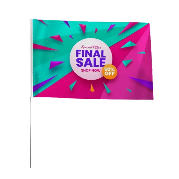 A custom flag is a traditional yet still super effective way to advertise your brand, business, services, and/or products. Flags can generally help in drawing attention to your event, as it’s the most practical way to gain passive attention without trying too hard! Our custom hand flags can definitely help you draw some much-needed attention, especially because they can be customized in a multitude of ways! Our flags are perfect for any event, including but not limited to high school and college sports competitions as well as major outdoor events!  Unlimited colors, no setup charge, and a professional graphics team—we can help you bring your design to life here at Custom Flags Now!