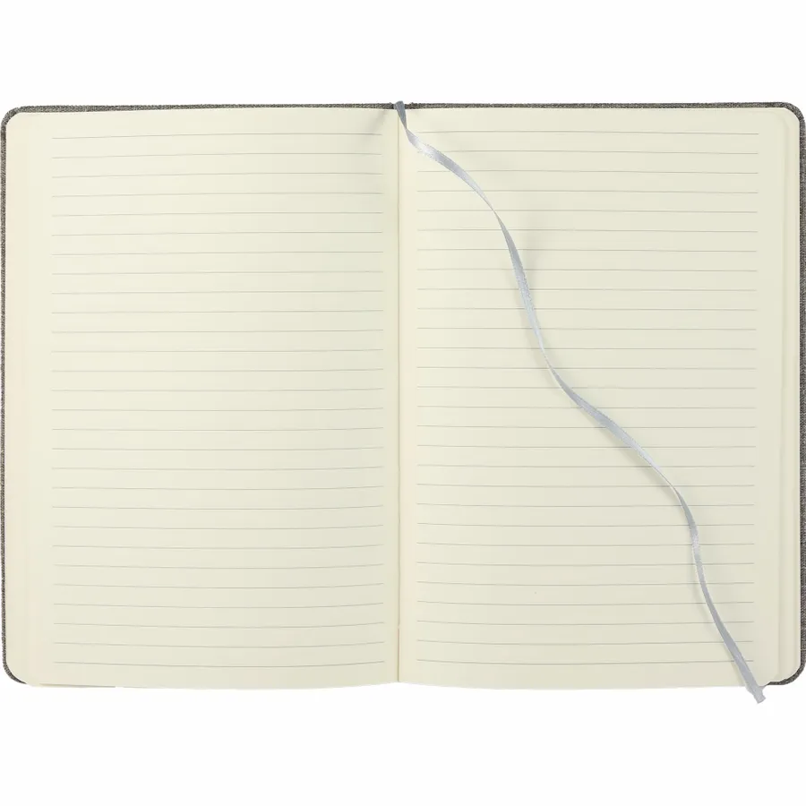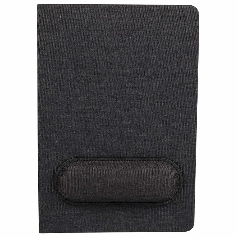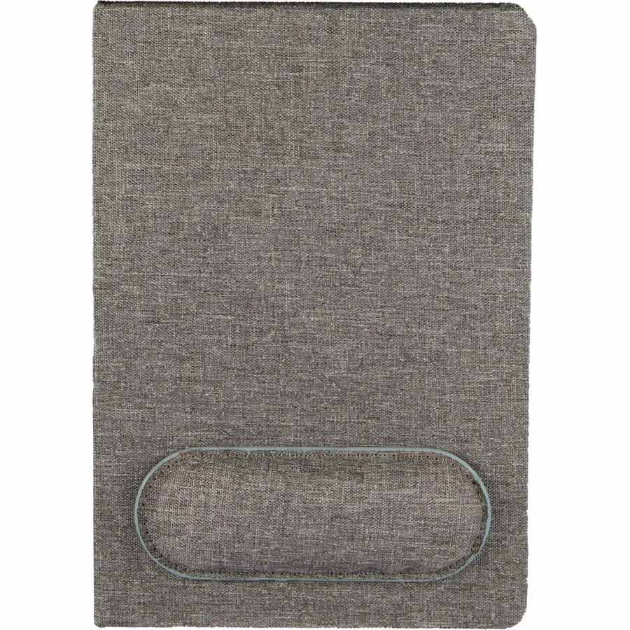 The 5.5 x 8.5 FSC Recycled Mouse Pad Bound Notebook is the ideal addition to your workday, blending comfort and functionality. Featuring a 100% recycled PET fabric cover, this notebook includes a unique matching magnetized wrist pad for comfortable scrolling. Inside, you’ll find 80 sheets of FSC recycled lined cream paper, perfect for eco-conscious note-taking. A grey ribbon page marker adds functionality, helping you keep track of important notes. Please note magnetic mouse pads are packed separately and removed from the notebook in the master carton. By choosing this notebook, you’re making a positive impact on the environment through a partnership with 1% For The Planet, as a portion of each sale supports environmental nonprofits.