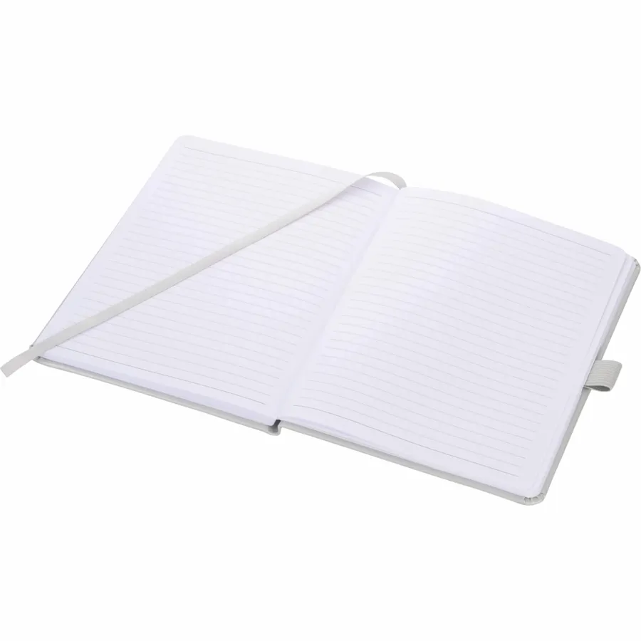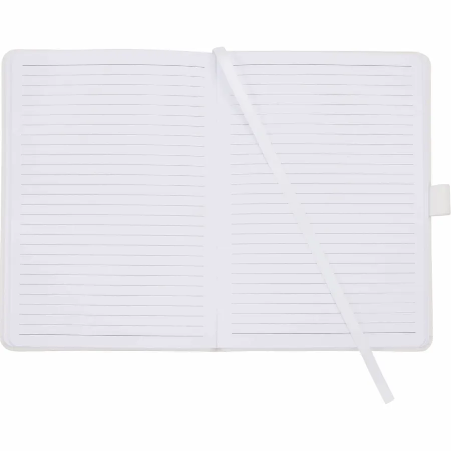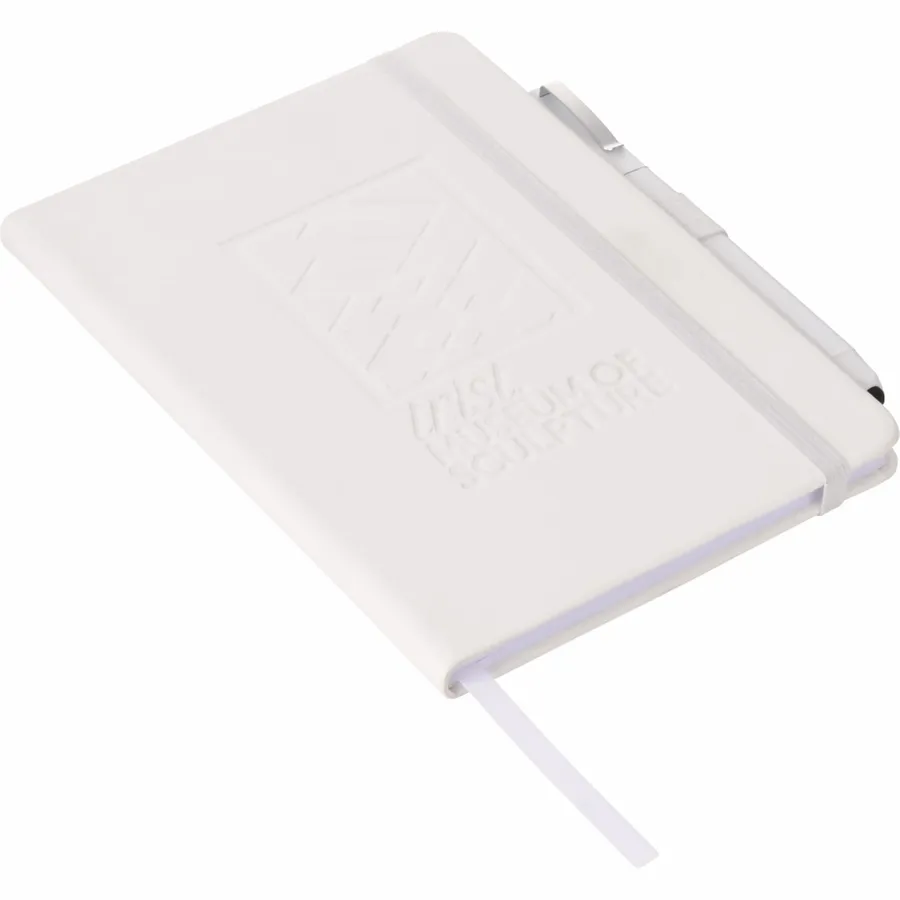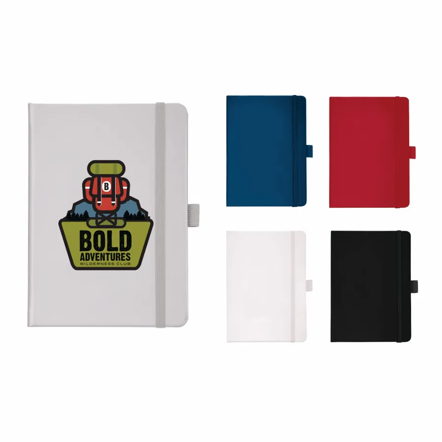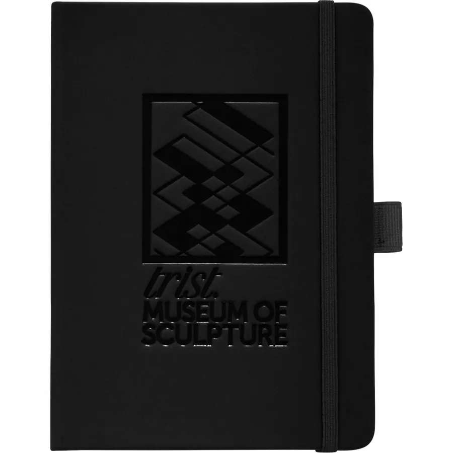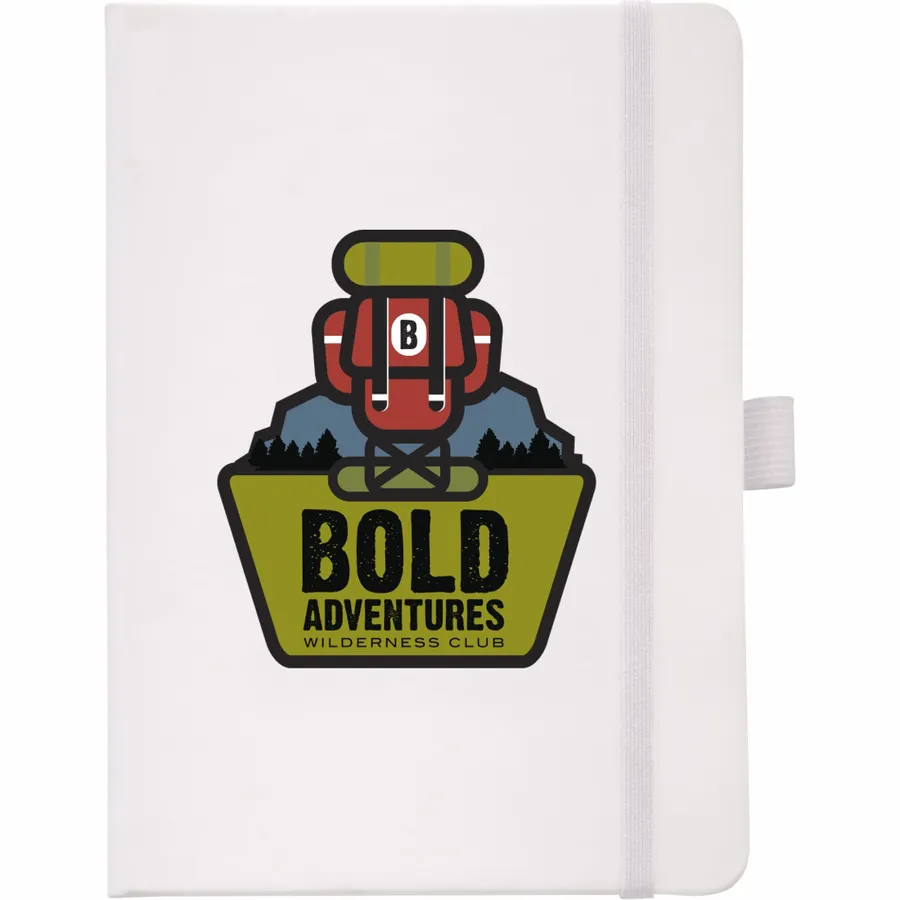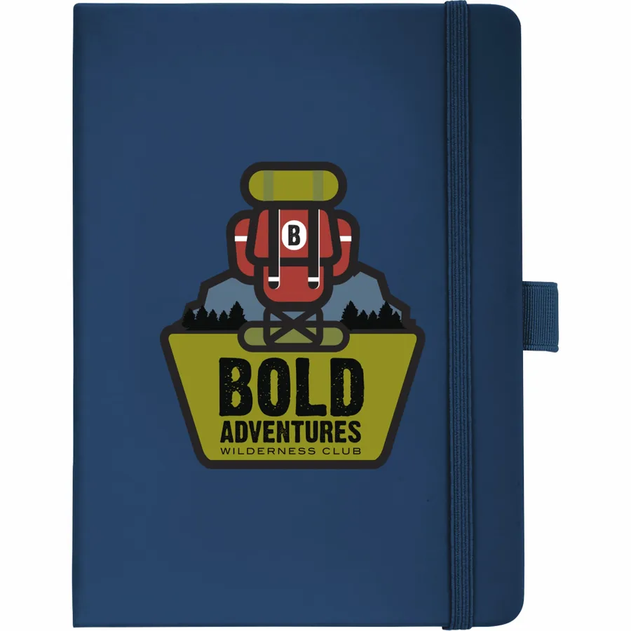 The 5 x 7 FSC Mix Vienna Hard Bound Journal is a soft touch, hard cover bound journal with built-in elastic closure. This custom notebook features a color-matching elastic pen loop and ribbon page marker. The 5 x 7 FSC Mix Vienna Hard Bound Journal includes 72 sheets of FSC Mix white lined paper.