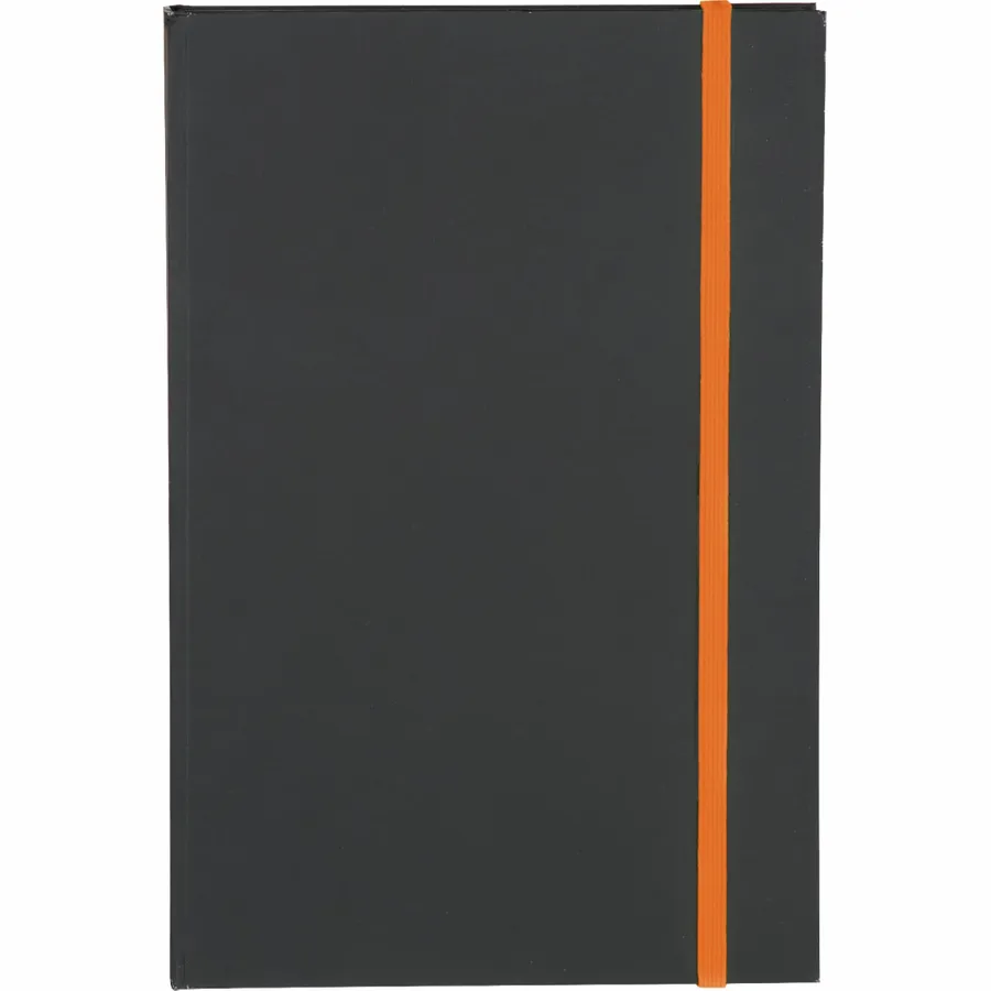 The 5.5 x 8.5 FSC Mix Color Pop Bound Journal features a hard cover with a soft matte black cover to highlight the most subtle or colorful logos. This custom Journal includes 96 sheets of FSC Mix cream lined paper with bright colored edges and corresponding color elastic closure.