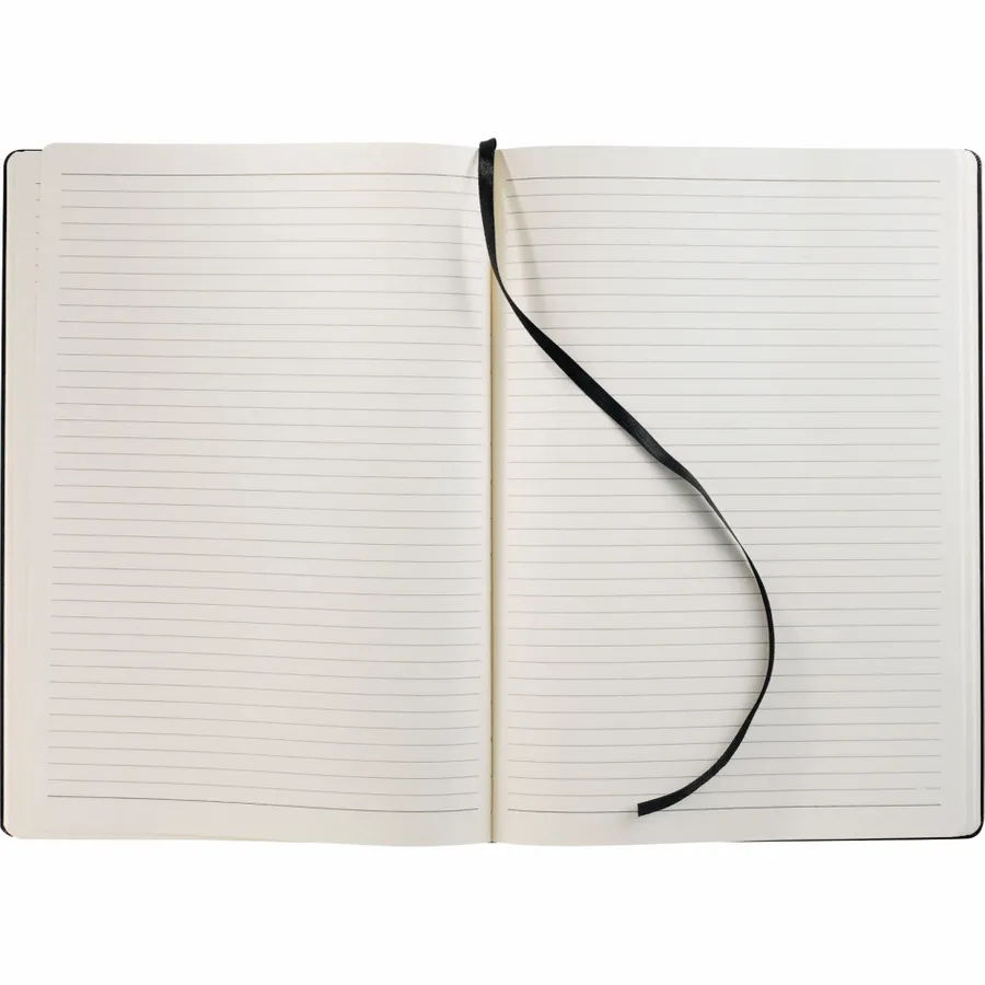 Record important notes in the 8 x 11.5 FSC Mix Ambassador Large Bound Journal, which includes 80 sheets of FSC Mix cream lined paper. This bound UltraHyde hardcover journal features a built-in elastic closure band, a ribbon-style page marker, and an expandable accordion pocket. Please note that laser engraving may result in minor imprint color variations between items.