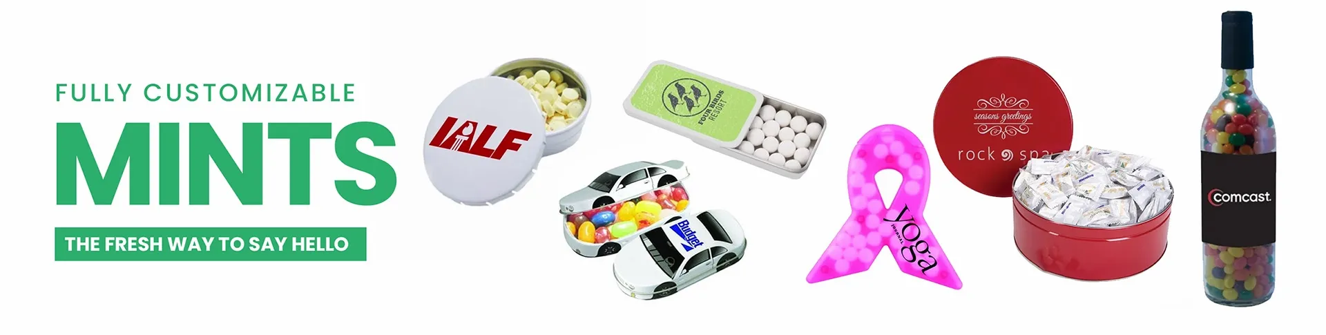 Perfect promotional item! The mint shapes added some fun, and the custom tin allowed our logo to stand out beautifully. - Ben R.
