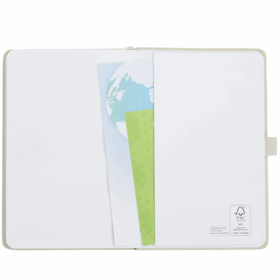 The 5.5 x 8.5 FSC Mix Pineapple Leather Bound Journal is uniquely crafted with 30% repurposed pineapple components. Hard cover, color-matching elastic closure, pen loop and ribbon page marker. 80 sheets of FSC-certified paper. Back document pocket. Through a partnership with 1% For The Planet, one percent of sales of all EcoSmart products will be donated to environmental nonprofits.