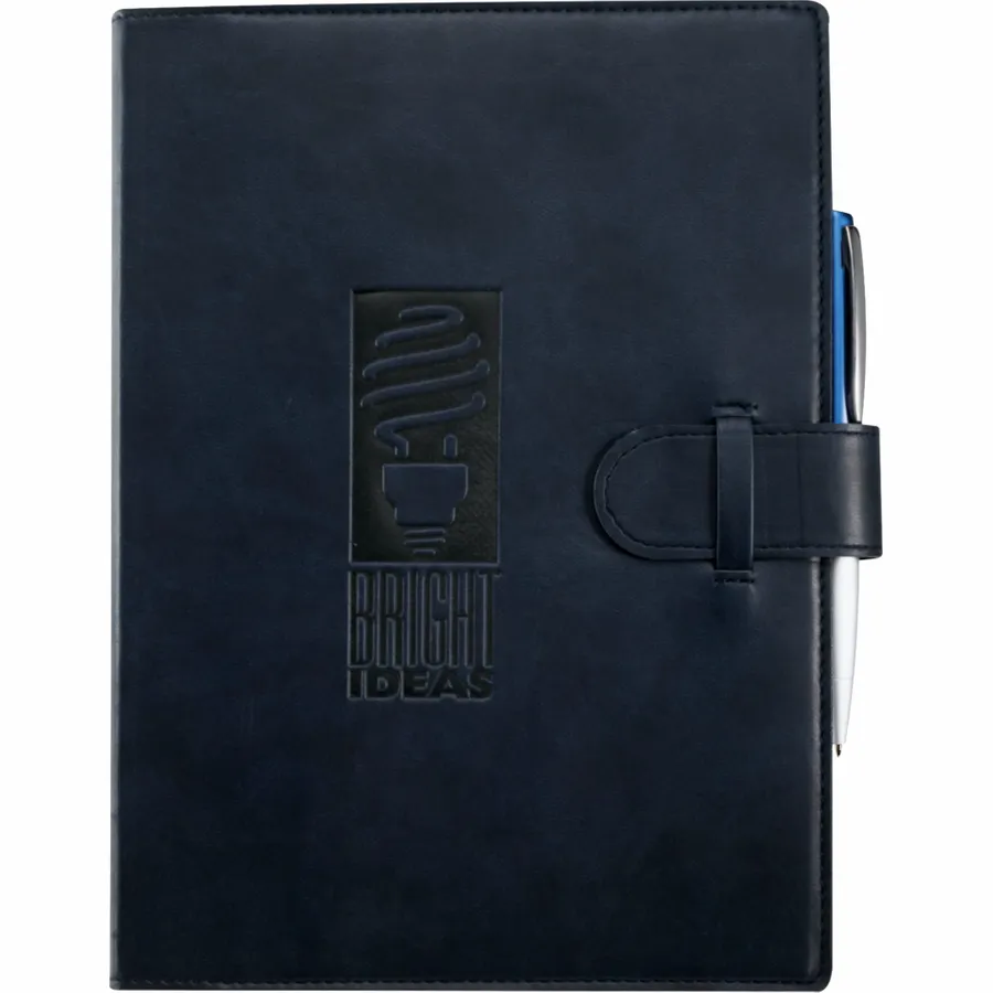 The 7 x 10 FSC Mix Dovana™ Large Journal contains 128 sheets of lined FSC Mix Journals refill paper. It includes an elastic pen loop, a dedicated slot for your business card, and ribbon page markers to hold your place. The Dovana™ cover is constructed from luxurious Italian UltraHyde and features a tab-and-loop closure to keep the notebook shut between uses. Pen not included.