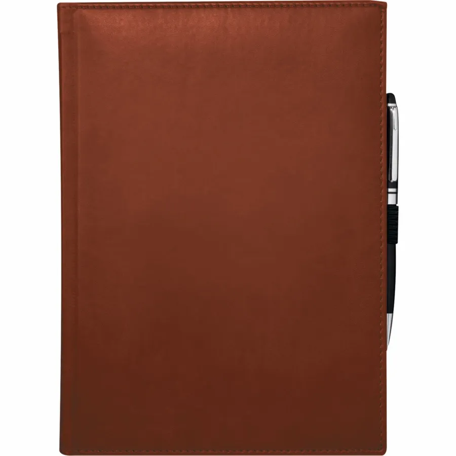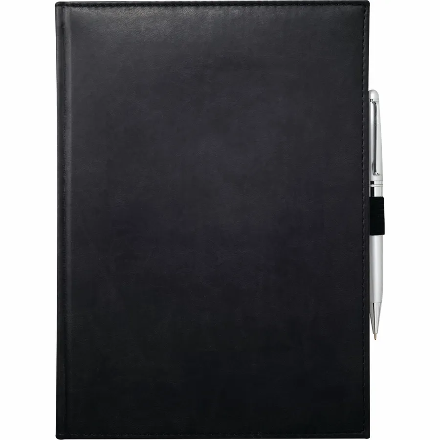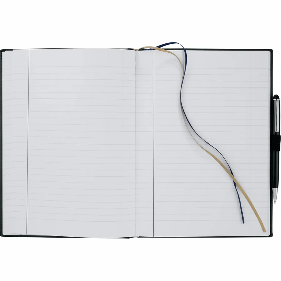 The 7 x 10 FSC Mix Pedova™ Large Bound Journal is a hardcover bound journal featuring Italian UltraHyde construction. It contains 125 sheets of FSC Mix white lined paper with built-in ribbon page markers to help hold your place between uses. This stylish notebook also features an elastic pen loop, with pens available to order separately.