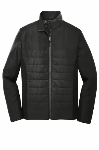 This jacket combines the warmth of low-bulk quilted insulation with flexible soft shell side panels for a trend-right, weather-resistant look.