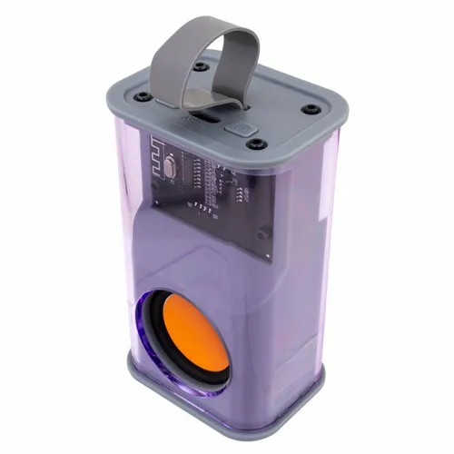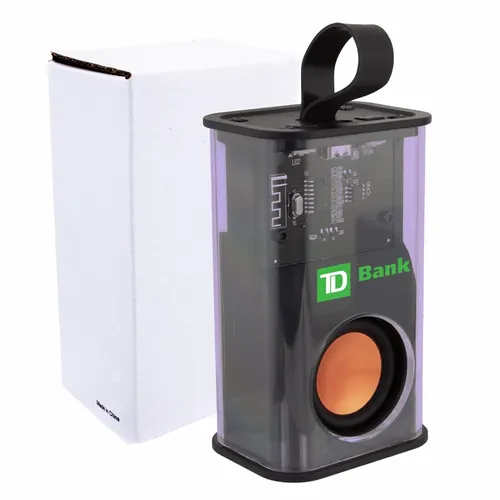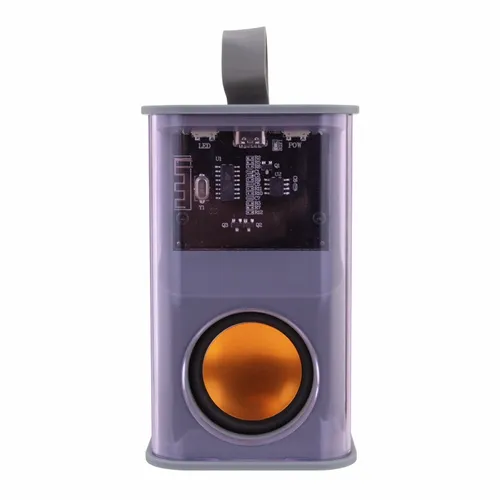 A perfect gift for tech enthusiasts who appreciate the inner workings of electronics. The clear outer case allows a user to see the speaker's circuitry inside the case while listening to their favorite tunes. The other side has a light panel with multiple fun light pattern sequence options. Specifications: Charging Voltage of Speaker: 5V/1A Maximum Audio Power: 5W Response Frequency: 70Hz-18KHz Wireless Distance: 10M Battery Capacity: 500 mAh (3.7V)